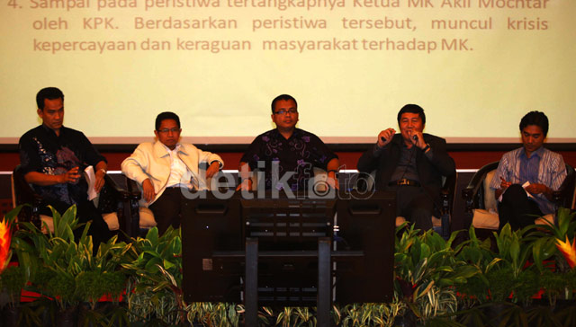 - Diskusi mengambil tema "Menyelamatkan MK, Menyelamatkan Pemilu 2014" digelar di Gedung Kemenkumham, Jakarta, Kamis (24/10/2013). Wamenkumham Denny Indrayana turut hadir dalam diskusi ini.