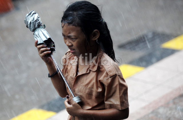 Jakarta - Bagi sebagian orang, hujan justru menjadi sarana berburu rezeki, Rabu (13/11/2013). Ojek payung salah satu di antaranya. Ojek payung ramai diminati banyak orang ketika hujan deras mengguyur.