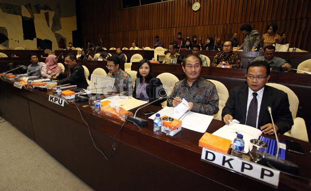 Jakarta - Komisi II menggelar rapat dengar pendapat membahas rancangan peraturan tentang tata laksana penyelenggaraan Pemilu, di ruang rapat Komisi II, Gedung Parlemen, Jakarta, Rabu (27/11). Rapat tersebut dihadiri sejumlah pihak terkait, seperti KPU, DKPP, Panwaslu dan Kemendagri.