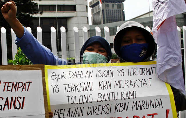 - Ratusan buruh menyambangi Kantor BUMN, Jakarta, Rabu (4/12/2013). Para buruh itu tergabung dalam Forum Silaturahmi Pekerja KBN Marunda.
