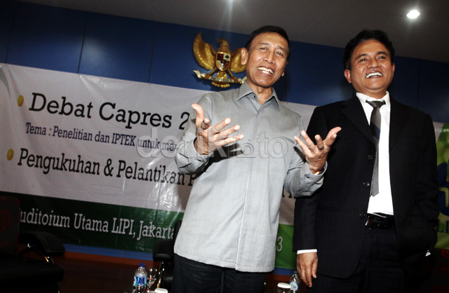 Jakarta - Pemilu 2014 sudah di depan mata. Lembaga Ilmu Pengetahuan Indonesia (LIPI) mengundang capres dari Partai Hanura Wiranto dan capres yang diusung PBB, Yusril Ihza Mahendra, pada acara debat capres, Jumat (13/12/2013).