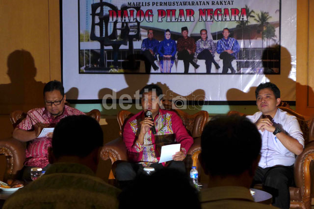 Dialog Pilar Negara BAGIKAN URL telah disalin Ketua Fraksi PKB MPR Lukman Edi, anggota Fraksi PDIP Maruarar Siarait dan pengamat politik UIN Antayuda menjadi pembicara. Maruarar Siarait menyampaikan pendapatnya. Dialog ini membahas tentang refleksi akhir tahun bidang politik, hukum dan keamanan di Indonesia.