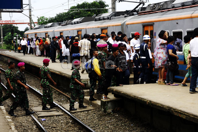 Jakarta - Warga di sekitar Stasiun Cilebut nekat memblokir rel kereta di kawasan ini, Selasa (17/12/2013). Warga protes karena PT KAI menutup jalan akses warga yang melewati kawasan tersebut.