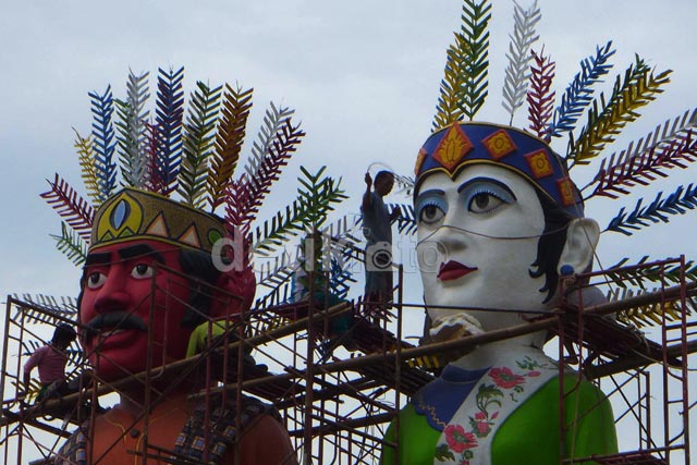 - Sejumlah pekerja menyelesaikan pemasangan patung ondel-ondel berukuran raksasa di Jalan Haji Benyamin Sueb, Kemayoran, Jakarta Pusat, Selasa (17/12/2013). Ondel-ondel ini diharapkan akan menjadi ikon kawasan Kemayoran.