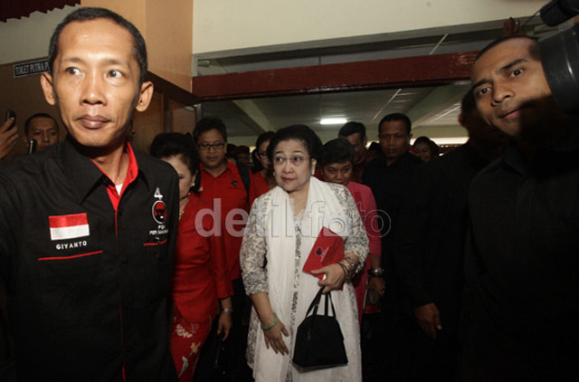 Jakarta - Putri proklamator kemerdekaan Indonesia, Megawati Soekarnoputri saat memberikan sambutan pada peringatan hari Ibu di GOR Otista, Jl Otto Iskandar Dinata, Jakarta, Minggu (22/12/2013). Megawati menegaskan dengan berapi-api bahwa perempuan sanggup memimpin bangsa, namun tidak sampai harus meninggalkan kodratnya sebagai ibu.