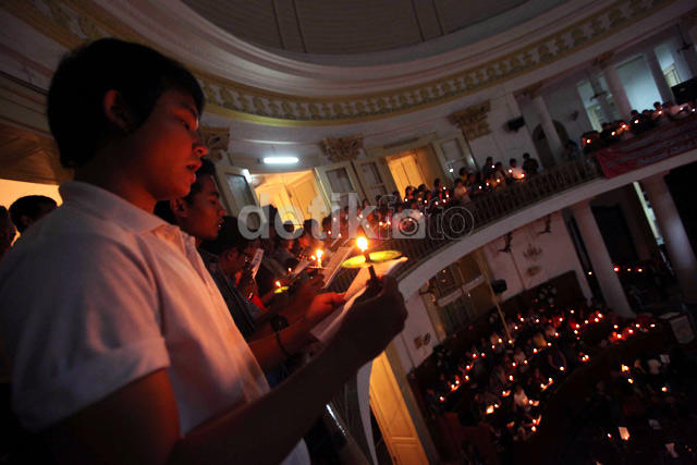 - Umat kristiani mengikuti Misa Natal di GPIB Immanuel, Jakarta Pusat, Selasa (24/12/2013). Misa Natal yang bertema "Kemitraan Dan Kesetaraan Demi Kesetiakawanan Sosial" itu berlangsung khidmat.