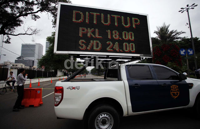 - Polisi mulai mengalihkan arus lalu lintas di kawasan yang menjadi pusat perayaan pergantian tahun baru 2014 'Jakarta Night Festival', Selasa (31/12/2013). Beberapa ruas jalan yang dialihkan diantaranya Jl Sudirman Thamrin, hingga Silang monas.