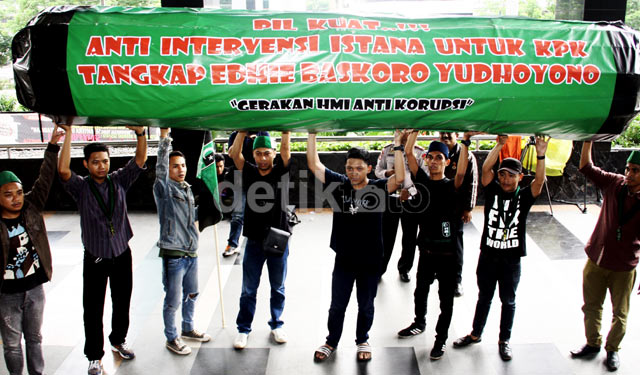 Puluhan massa tersebut meminta agar KPK jangan pandang bulu dalam pembrantasan korupsi. Lamhot Aritonang/detikFoto.