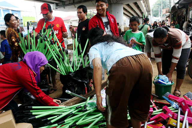 - Warga yang menjadi korban banjir di Kelurahan Rawajati, Pancoran, Jakarta Selatan mulai mendapat bantuan logistik, Sabtu (1/2/2014). Para warga pun langsung menyerbu bantuan tersebut.
