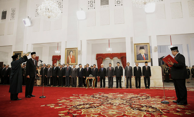 - Presiden Susilo Bambang Yudhoyono (SBY) melantik Muhammad Lutfi sebagai Menteri Perdagangan yang baru di Istana Negara, Jakarta, Jumat (14/2/2014). Lutfi menggantikan Gita Wirjawan yang sudah resmi mengundurkan diri sejak beberapa waktu lalu.