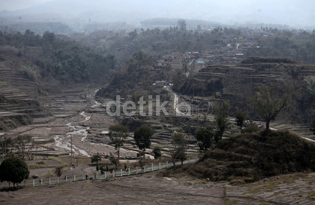 Β Β Β Β Desa Ngantang, Malang, Jawa Timur, yang terkena dampak terparah terkena abu vulkanik letusan Gunung Kelud.