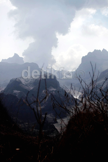 Β Β Β Β Saat ini, abu masih terlihat jelas di sekitar puncak. Asap putih tipis juga masih terlihat di sela-sela cekungan.