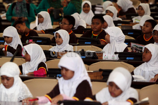 - Gedung DPR kedatangan tamu-tamu kecil dari Sekolah Dasar Islam dari KotaTangerang, Banten, Kamis (20/2/14). Mereka mengunjungi DPR dalam rangka studi tour untuk mengenal tugas dan fungsi DPR/MPR.
