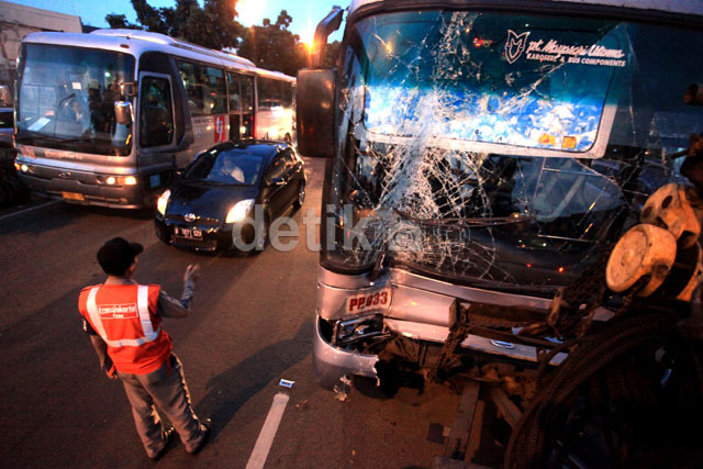- Bus Trans Jakarta jurusan Pulogadung- Dukuh Atas dengan nomor polisi B 7055 IV menabrak tiang penunjuk arah di Jalan Pramuka, Jakarta Timur, Kamis (20/02/2014). Peristiwa yang terjadi sekitar pukul 17.20 WIB membuat kaca depan bus TransJ tersebut pecah.