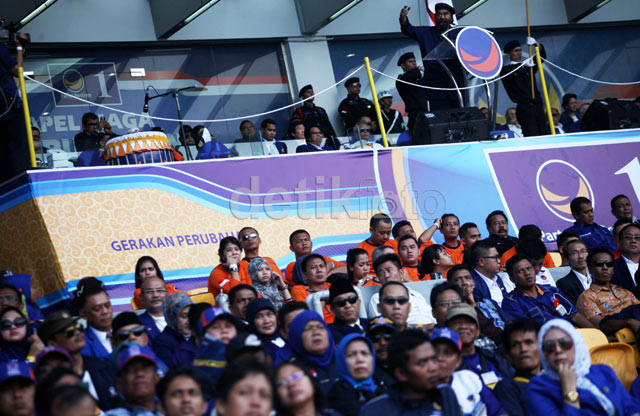 - Partai NasDem menggelar apel siaga Partai NasDem di Gelora Bung Karno, Jakarta, Minggu (23/2/14). Apel ini dipimpin Ketum Partai NasDem Surya Paloh.