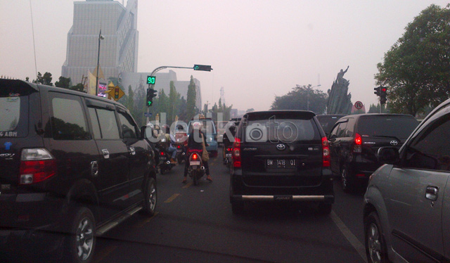- Pekanbaru dikepung asap pekat dari imbas kebakaran hutan dan lahan, Rabu (26/2/2014). Papan indeks pencemaran udara menunjukan kualitas udara pada posisi tidak sehat. Banyak anak sekolah berkativitas menggunakan masker.