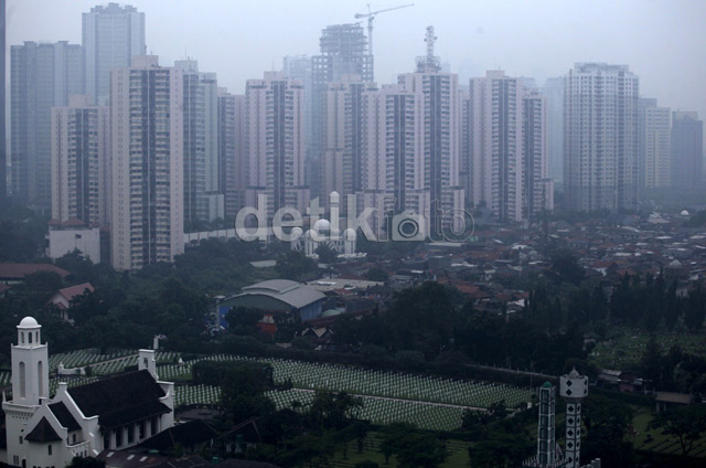Jakarta - Hujan yang mengguyur dari pagi hingga siang membuat Jakarta berkabut, Kamis (27/2/2014). Kabut itu menutupi gedung-gedung pencakar langit yang berada di kawasan Jakarta.