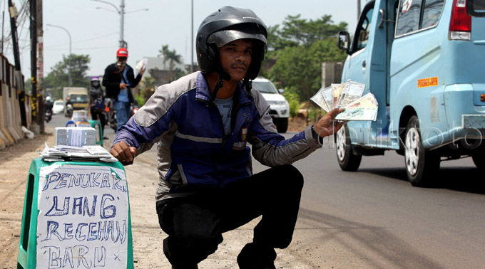 Jalan Kalimalang Dipenuhi Jasa Penukaran Uang