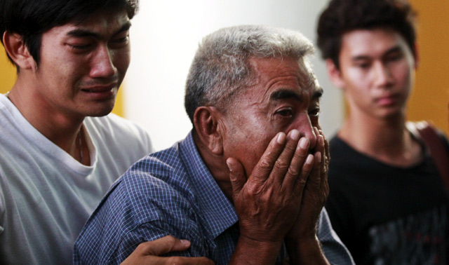 Isak tangis Keluarga Korban Bom di Bangkok BAGIKAN URL telah disalin Tangis keluarga korban tak terbendung melihat jenazah korban ledakan bom di Kuil Erawan, Bangkok, Thailand. Chaiwat Subprasom/Reuters/detikFoto. Meraka tak kuasa menahan tangis saat melihat keluarganya harus meregang nyawa dalam perstiwa ini. Chaiwat Subprasom/Reuters/detikFoto. Korban tewas kini bertambah menjadi 21 orang. Chaiwat Subprasom/Reuters/detikFoto. Sedangkan sebanyak 123 orang lainnya mengalami luka-luka dalam ledakan tersebut. Chaiwat Subprasom/Reuters/detikFoto. Tujuh korban tewas di antaranya merupakan warga negara asing dari China, Hong Kong, Malaysia dan Singapura. Kerek Wongsa/Reuters/detikFoto.