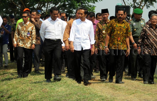 Jokowi kembali melakukan blusukan. Kali ini Jokowi melihat langsung lahan pertanian warga yang terletak di Sukoharjo.