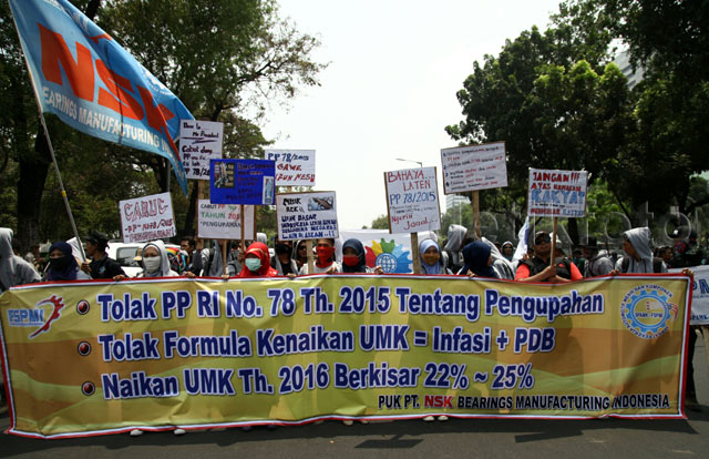 Buruh dari Brigade SPSI memakai pakaian serba biru.