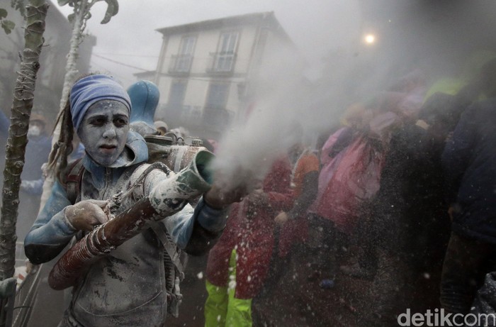 Jakarta - Festival "O Entroido" digelar di Desa Laza, Spanyol. Festival ini adalah pesta perang tepung antar warga.