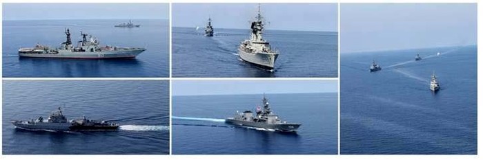 Puluhan kapal perang asing melaksanakan “Sea Phase” latihan bersama tahap laut dengan kapal perang TNI Angkatan Laut yang dilaksanakan di Perairan Padang dan Kepulauan Mentawai. Istimewa/dok Puspen TNI.