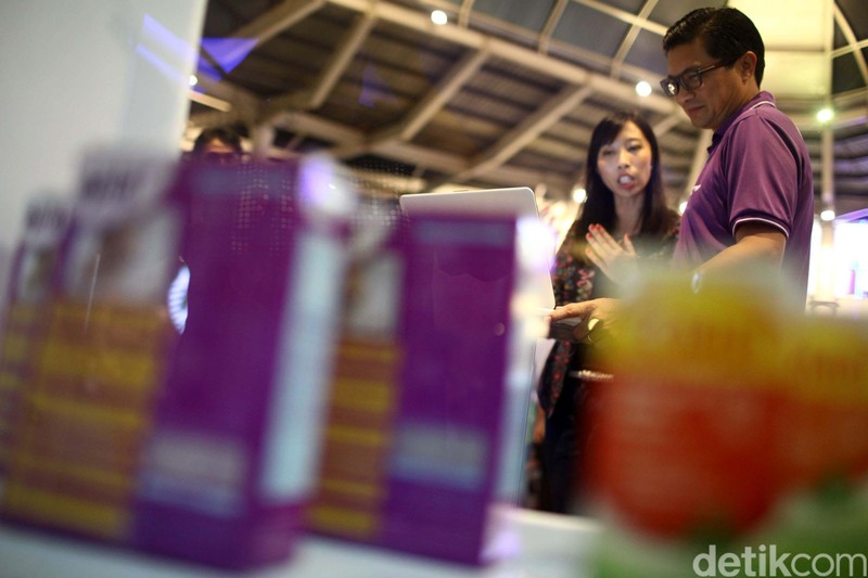 Chief Executive Officer (CEO) Combiphar Michael Wanandi bersama pengunjung tengah mendapatkan informasi dan konsultasi saat acara CombiVaganza, Jakarta, Sabtu (23/04/2016).