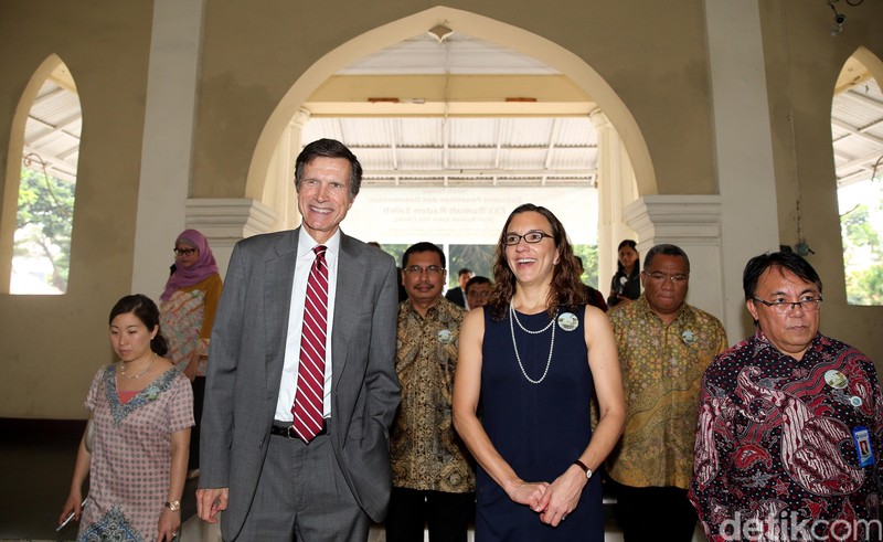 Duta Besar AS untuk Indonesia Robert O Blake saat tiba di situs rumah Raden Saleh yang sudah dijadikan cagar budaya oleh Pemprov DKI Jakarta.