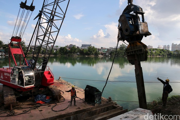 Jakarta - Danau Sunter, Jakarta Utara, dipasangi turap, Rabu (4/5/2016). Turap itu untuk mencegah abrasi.