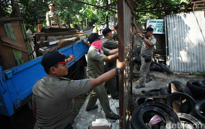Pembongkaran ini dilakukan karena bangunan tersebut tidak memiliki izin dan berada di atas saluran air.