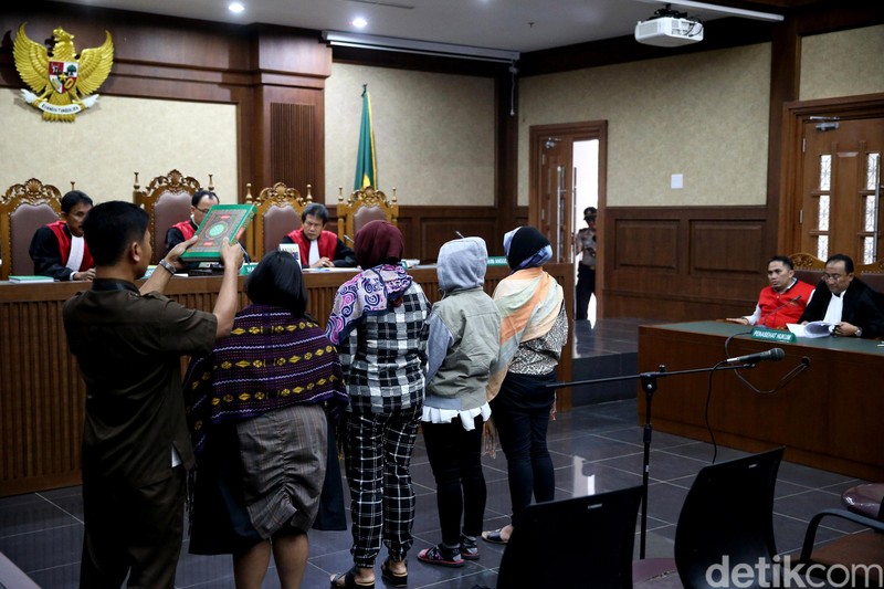 Tiga pembantu rumah tangga yang bekerja untuk Ivan Haz dan seorang aktivis dari LBH APIK disumpah sebelum memberikan kesaksian di Pengadilan Negeri Jakarta Pusat, Rabu (15/6/2016).