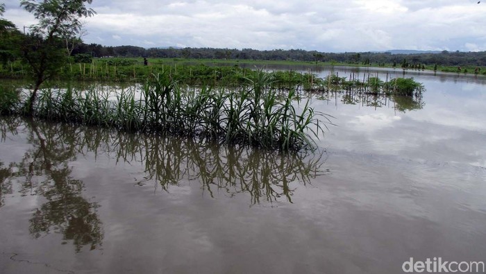 Jakarta - Intensitas hujan deras yang mengguyur wilayah DIY lebih dari 6 jam lamanya, areal persawahan di wilayah Bantul terendam banjir.