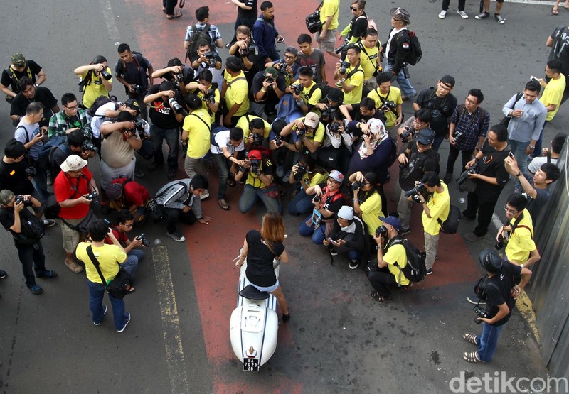 Memanfaatkan Lengangnya Jalanan Jakarta BAGIKAN URL telah disalin Sejumlah orang memanfaatkan sepinya jalanan di kawasan Bundaran Hotel Indonesia, Jakarta, Kamis (07/07/2016). Momen sepinya jalan Jakarta ini dimanfaatkan oleh sejumlah orang pecinta fotografi untuk melakukan sesi photoshoot bersama. Beberapa model bergaya di salah satu ruas jalan di kawasan Bundaran HI. Sejumlah fotografer tengah asik membidikkan lensa kamera mereka kepada sang model. Lengangnya jalanan Jakarta digunakan sejumlah orang untuk menyalurkan hobi fotografinya.