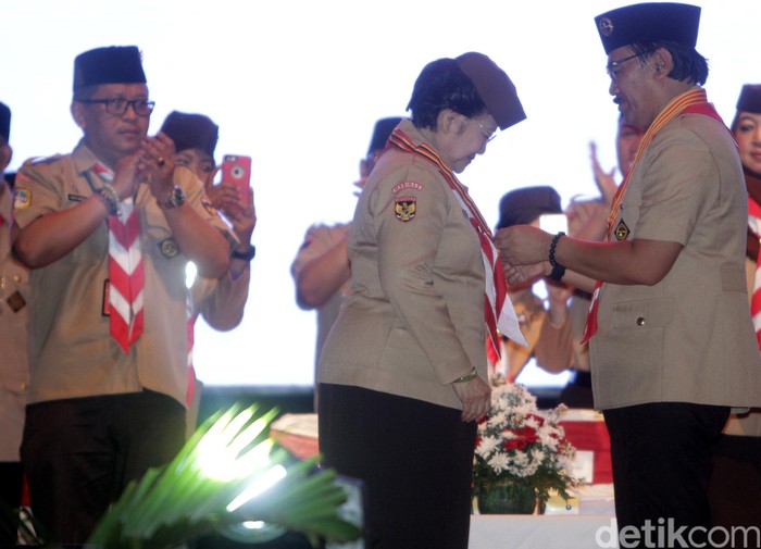 Jakarta - Megawati Soekarnoputri dianugerahi gelar kehormatan Lencana Tunas Kencana. Gelar untuk Presiden ke-5 Republik Indonesia diberikan oleh Kwarnas Pramuka.
