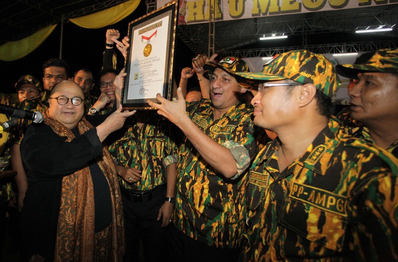 Ketua MURI Jaya Suprana menyerahkam piagam MURI kepada Ketua AMPG Pusat Fat Arafiq, karena ribuan kader sebuah Partai mengikuti Bela Negara.