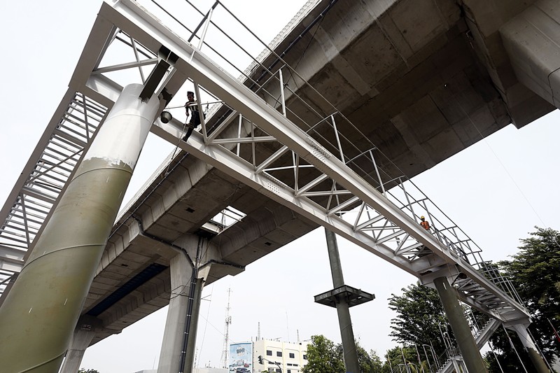 JPO di Jalan Trunojoyo Kembali Dipasang BAGIKAN URL telah disalin Jembatan Penyeberangan Orang di Jalan Trunojoyo kembali dipasang. Dua orang pekerja mengerjakan pembangunan JPO. Pekera mengecat JPO dengan warna putih. Kaleng cat ditarik ke atas menggunakan tali. Seorang pekerja menyiapkan cat JPO. Seorang pekerja mengecat JPO.