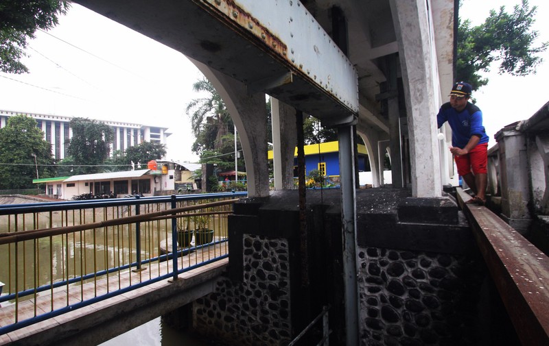 Perawatan Pintu Air di Jakarta BAGIKAN URL telah disalin Seorang petugas dari Dinas Tata Kota tengah melakukan perawatan pintu air Istiqlal di Jakarta Pusat, Selasa (15/11/2016). Salah seorang petugas nampak sedang mengecat pintu air yang dibangun sejak masa kolonial Belanda tersebut. Pintu air tersebut termasuk cagar budaya dan termasuk bagian dari sistem kanal Batavia yang mengatur aliran tengah Sungai Ciliwung. Perawatan berkala itu dilakukan demi menjaga keindahan dan memaksimalkan fungsi pintu air. Selain itu fungsi pintu air juga untuk mencegah banjir.