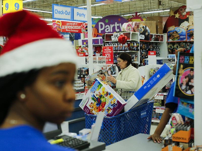 Seorang pembeli wanita terlihat memenuhi troli belanjanya saat Black Friday di salah satu toko di New Jersey, Amerika Serikat, Jumat (25/11/2016). Eduardo Munoz Alvarez/Getty Images.