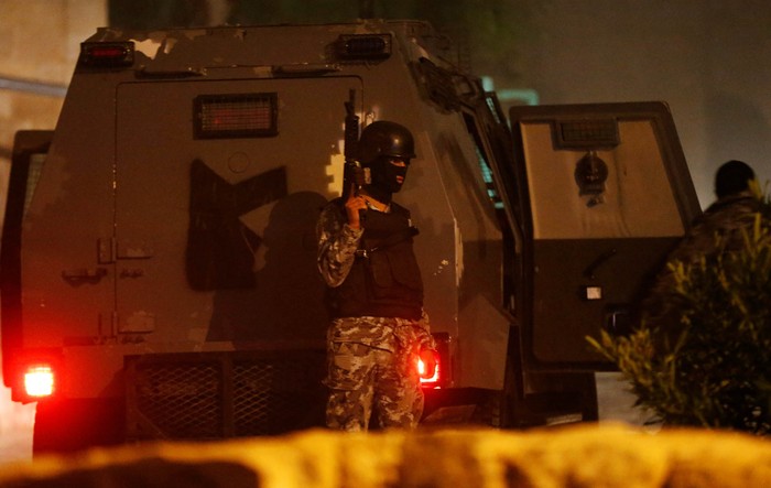 Polisi berjaga di sekitar lokasi penyerangan di Karak, Yordania. Muhammad Hamed/Reuters/detikFoto.