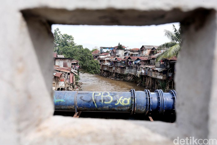 Jakarta - Bantaran Sungai Ciliwung, Manggarai, Jakarta, dihiasi dengan permukiman kumuh, Senin (19/12/2016). Ini penampakannya.