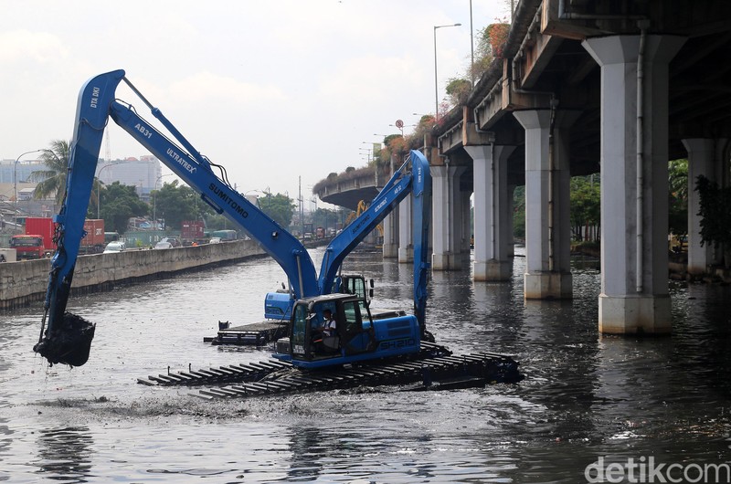 7 Alat Berat Keruk Kali Ancol BAGIKAN URL telah disalin Sejumlah alat berat tengah mengeruk lumpur di Kali Ancol, Selasa (10/1/2017). Pengerukan sungai itu untuk mengurangi pendangkalan. Selain itu fungsi pengerukan itu juga untuk memperbesar daya tanmpung air. Terlihat lumpur yang dikeruk nampak berwarna sangat hitam.