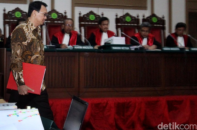 Ahok didampingi kuasa hukumnya menjalani sidang keenam kasus dugaan penistaan agama dengan agenda mendengarkan keterangan saksi. Pool/Resa Esnir/detikcom.