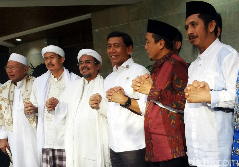 Habib Rizieq Gandengan Tangan dengan Wiranto BAGIKAN URL telah disalin Wiranto, Habib Rizieq, Bachtiar Nasir, serta tokoh yang hadir lainnya foto sambil bergandengan tangan. Wiranto, Habib Rizieq, dan Bachtiar Nasir juga melempar senyuman. Habib Rizieq dkk meninggalkan rumah dinas Wiranto di Jl Denpasar, Kuningan, Jakarta Selatan, Kamis (9/2/2017).