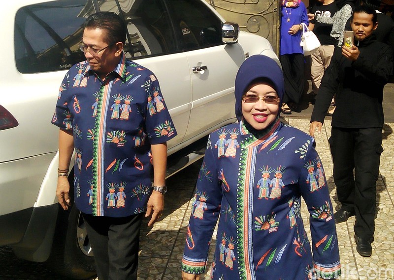 Terlihat, Sylviana berangkat dari rumahnya di Jalan Marinir Blok X, Pondok Kelapa, Duren Sawit, Jakarta Timur, Rabu (15/2/2017) pagi, Sylviana dan suaminya berjalan bersama dua anak, dua menantu, dan empat cucunya, menuju TPS 103.