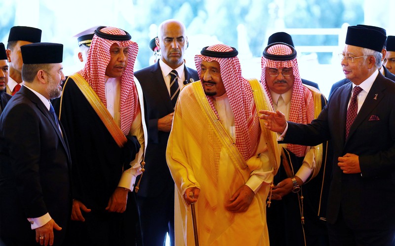 Raja Salman Mampir di Malaysia BAGIKAN URL telah disalin Raja Salman (ketiga kanan) saat disambut PM Malaysia Najib Razak (kanan) dan Sultan Kelantan, Muhammad V (kiri). (Foto: Reuters/Edgar Su) Raja Salman bin Abdul Aziz saat tiba di Kuala Lumpur, Malaysia. (Foto: Reuters/Edgar Su) Raja Salman berada di Malaysia sebelum bertolak ke Jakarta, Rabu (1/3). (Foto: Reuters/Edgar Su) Raja Salman disambut upacara kenegaraan di Kuala Lumpur, Malaysia. (Foto: Reuters/Edgar Su)