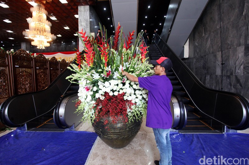 Dekorasi penyambutan Raja Salman di DPR. Rencananya Raja Arab Saudi itu akan berkunjung ke gedung DPR pada Kamis (2/3/2017). Raja Salman akan berpidato mengenai kerja sama antara Indonesia-Arab Saudi.