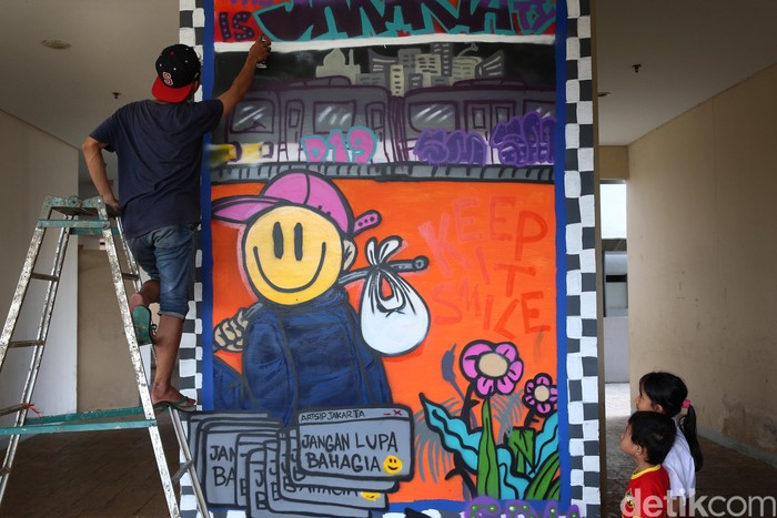 Jakarta - Pemandangan berbeda terlihat di sejumlah RPTRA dan Rusunawa. Rusun dan RPTRA tersebut kini diwarnai hiasan mural.