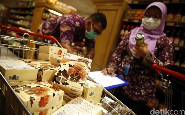 Jakarta - Badan Pengawas Obat dan Makanan (BPOM) DKI menggelar razia makanan di supermarket Kem Chicks, Kemang. Razia guna mencegah peredaran makanan berbahaya.