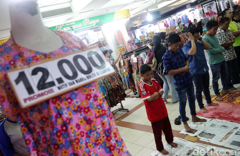 Masjid Membludak Warga Salat Jumat di Pasar BAGIKAN URL telah disalin Warga salat Jumat di area Pasar Tanah Abang. Hal ini karena membludaknya jamaah yang salat di masjid. Saat salat berlangsung, transaksi jual beli tetap terjadi. Warga berjajar di lorong-lorong pasar. Tampak karung berisi barang dagangan menumpuk di depan mereka. Salat Jumat berlangsung khidmat.
